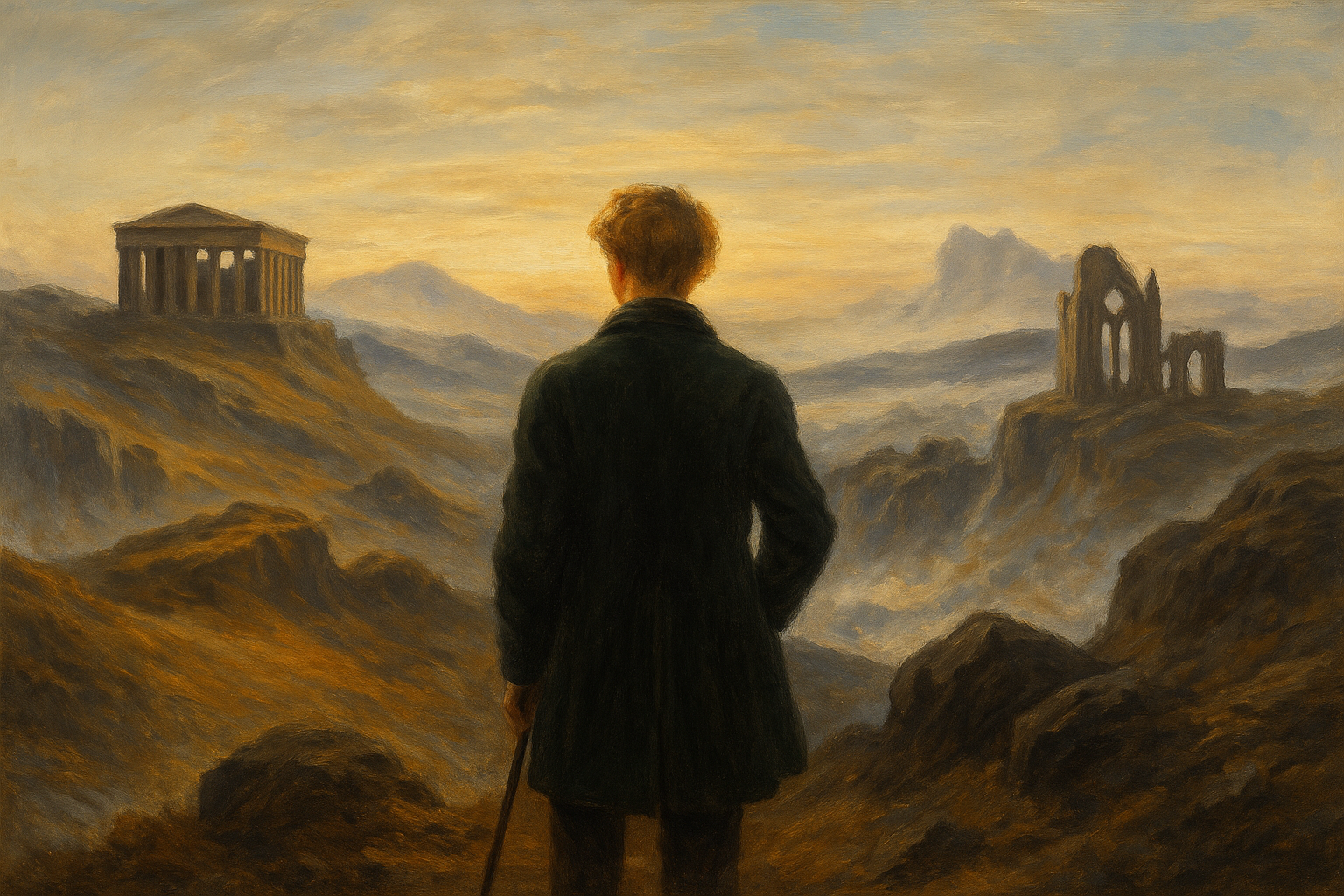 낭만주의 예술은 이성보다 감정, 상상력, 개성을 중시합니다. 프리드리히의 ‘안개 바다 위의 방랑자’, 들라크루아의 ‘민중을 이끄는 자유의 여신’ 같은 작품들은 개인의 내면과 자유, 역사적 격변을 드러냅니다. 헤겔은 낭만주의를 “절대정신이 자기 자신을 내면에서 인식하는 단계”로 보았으며, 이를 통해 예술이 점점 철학과 종교로 넘어간다고 설명했습니다.