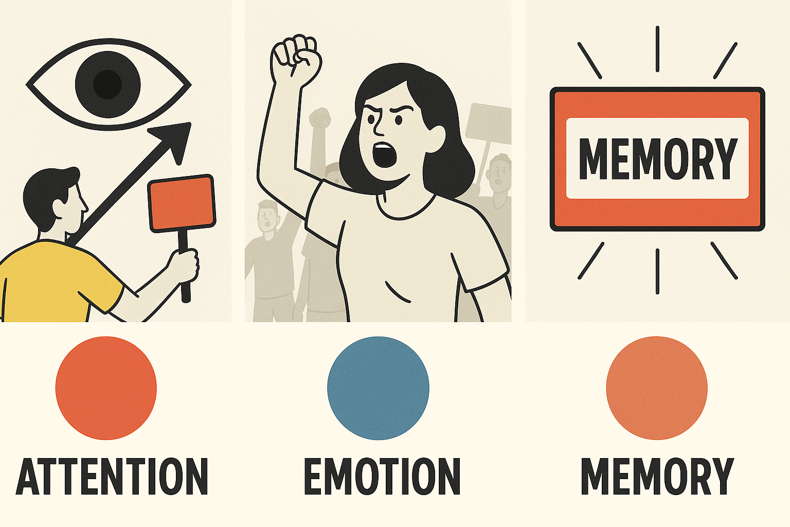 | 감정 | 공명·동일시·정서 전염 | 인물 제스처, 군집 리듬, 구호 | “한 단어 감정을 고르면?” |