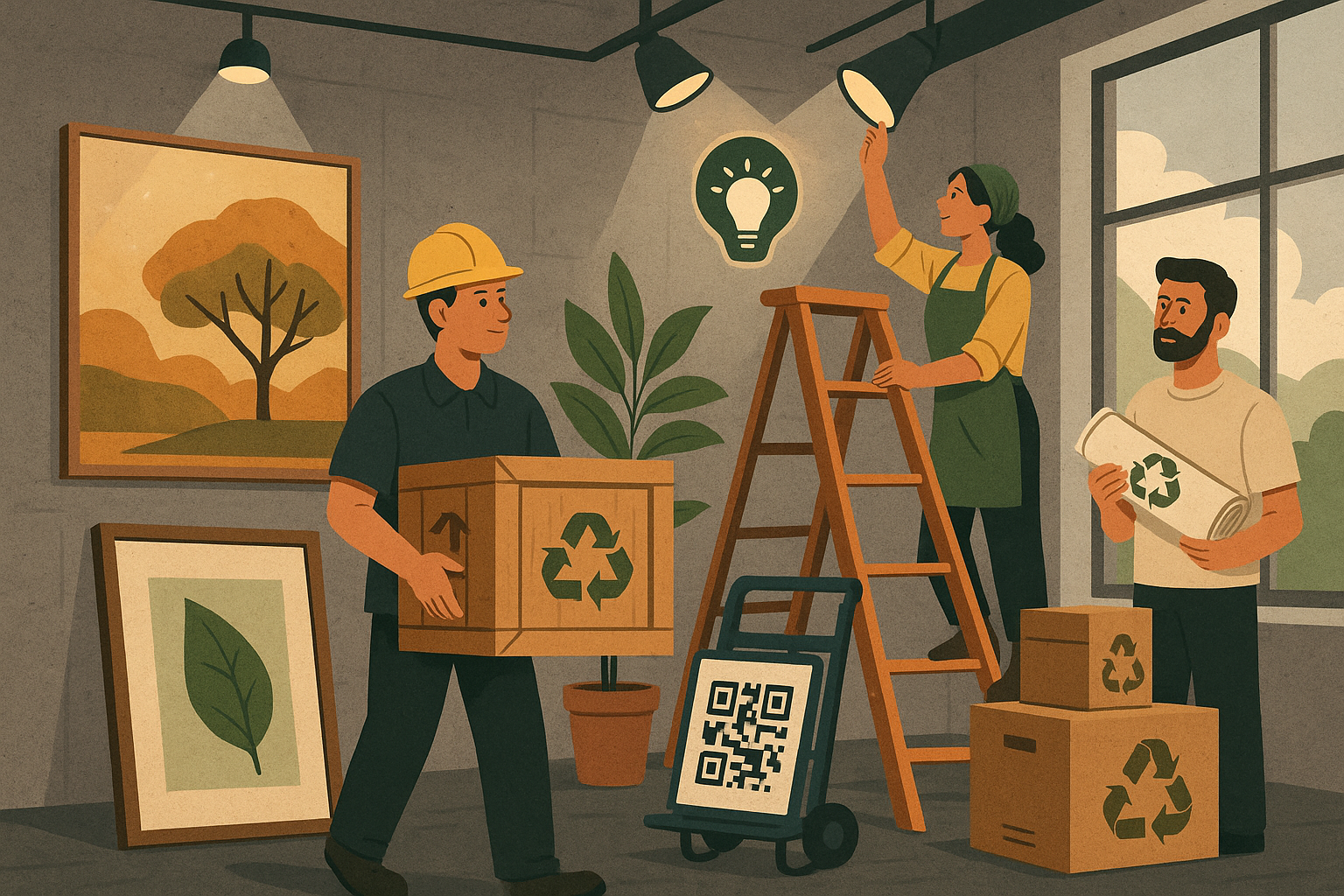 전시는 아름다운 경험이면서 동시에 물류·전력·인쇄·폐기물의 집합입니다. 기획 → 제작 → 운영 → 철거 전 주기를 관리하면, 예산을 늘리지 않고도 탄소를 크게 줄일 수 있습니다.