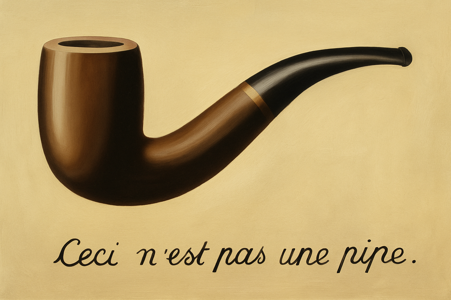 파이프는 세밀하고 사실적으로 묘사되었지만, 그것은 실제 파이프가 아닙니다. 그림이란 언제나 대체물이며, 이는 재현의 본질을 질문하는 장치입니다.