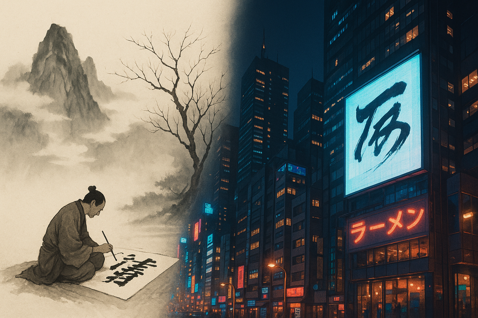 - 메가시티와 미디어 환경은 전통 미학을 디지털 공간으로 번역한다.